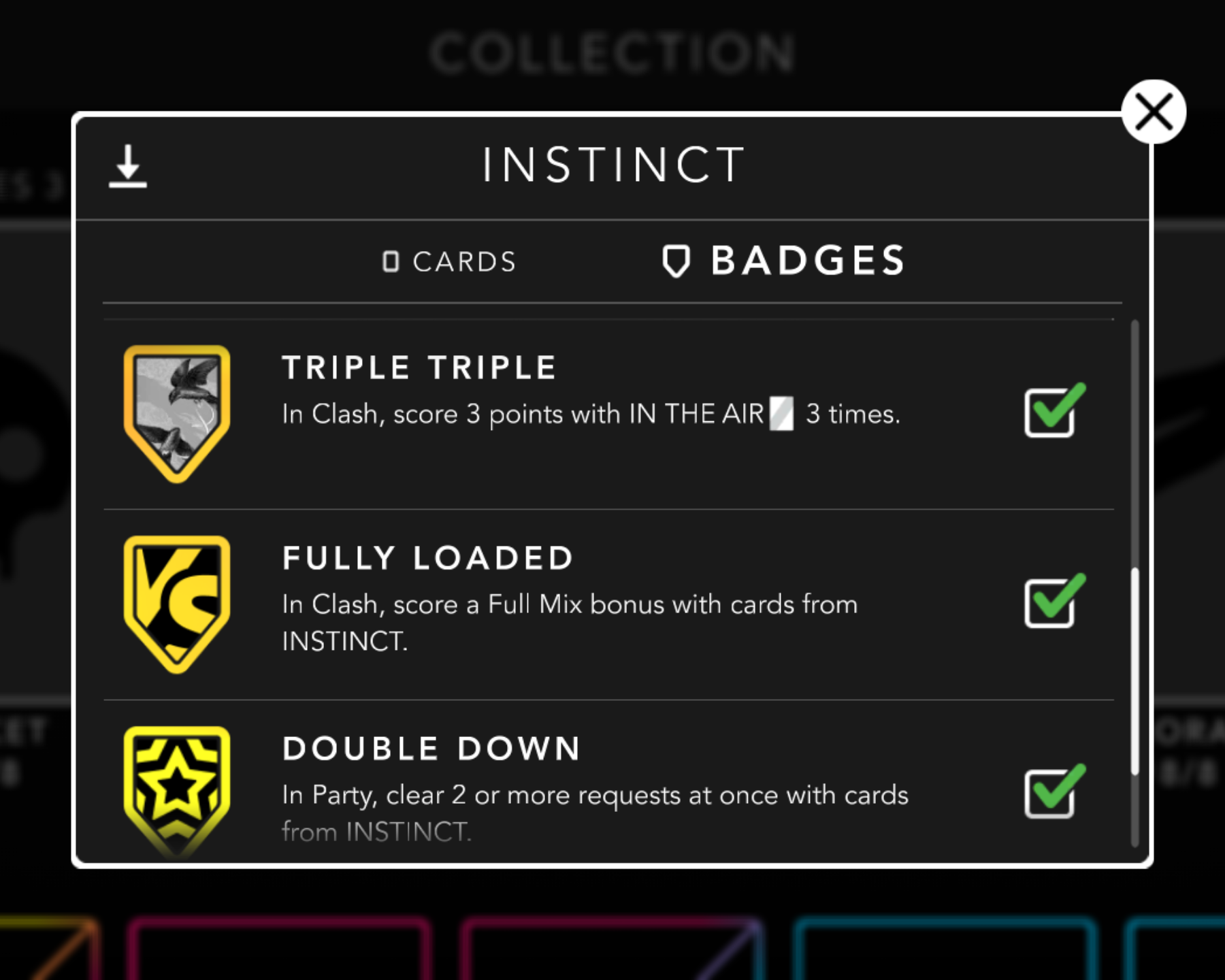 As you collect cards, the collection view will start to fill in. Collect all the cards and the playlist turns gold in the collection view. If you earn all the badges for a particular playlist, you will also unlock a special rainbow effect for that playlist icon across the entire game!